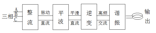 GGP系列固態高頻電源采用現代電力電子(交-直-交)變換技術,將三相工頻50Hz的交流電經整流單元轉變為脈動直流,然后通過濾波單元變換為平滑直流,再通過逆變器將直流電轉變為單相高頻交流電(100~600kHz)送至匹配變壓器,為由曹路電容、感應器等組成的串聯諧振電路提供能量,感應器通過非接觸方式將能量傳遞給工件,以達到感應加熱的目的。該電源采用MOSFET模塊作為逆變器的核心元器件,整流和逆變單元均采用單片機作為核心控制器件,具有電路穩定可靠、操作簡單、調試方便。